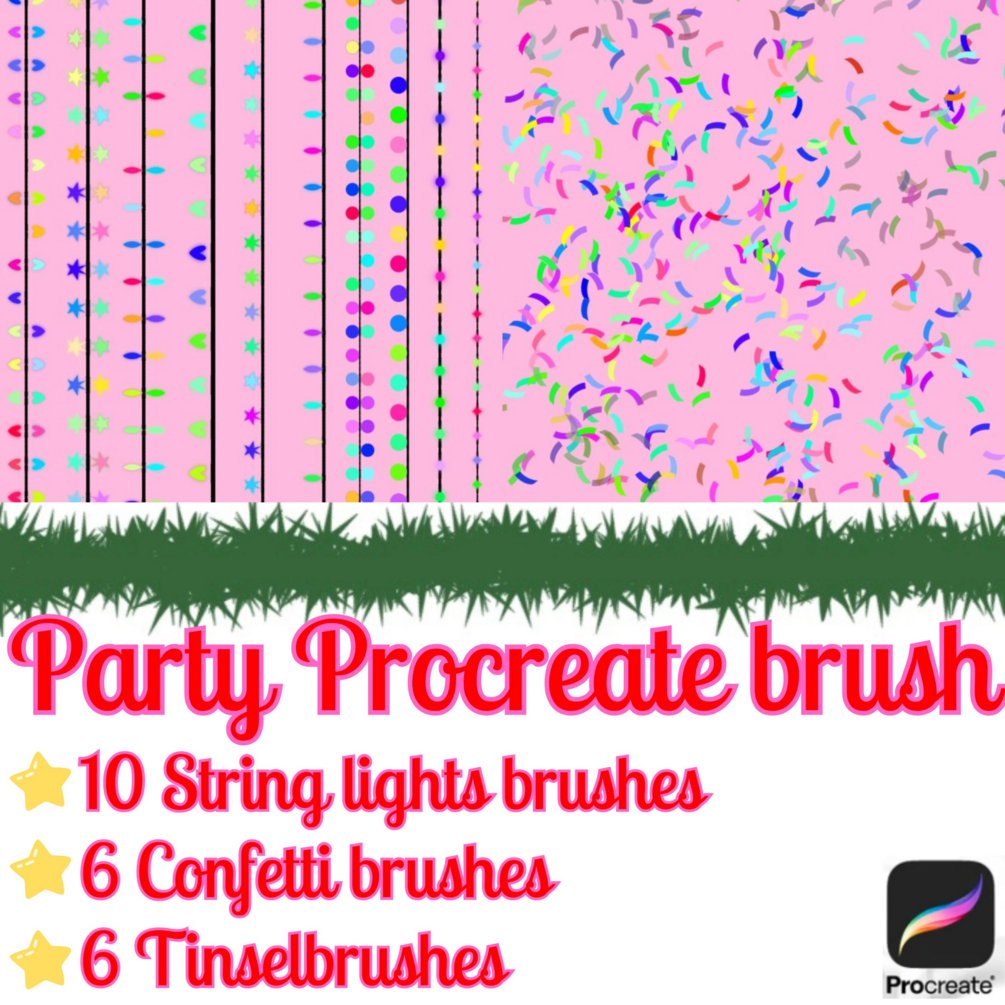 Procreate Confetti Brush Tinsel Brush & String Lights Brush| Procreate party brush | Christmas brush |Birthday | Gift | Halloween | Easter