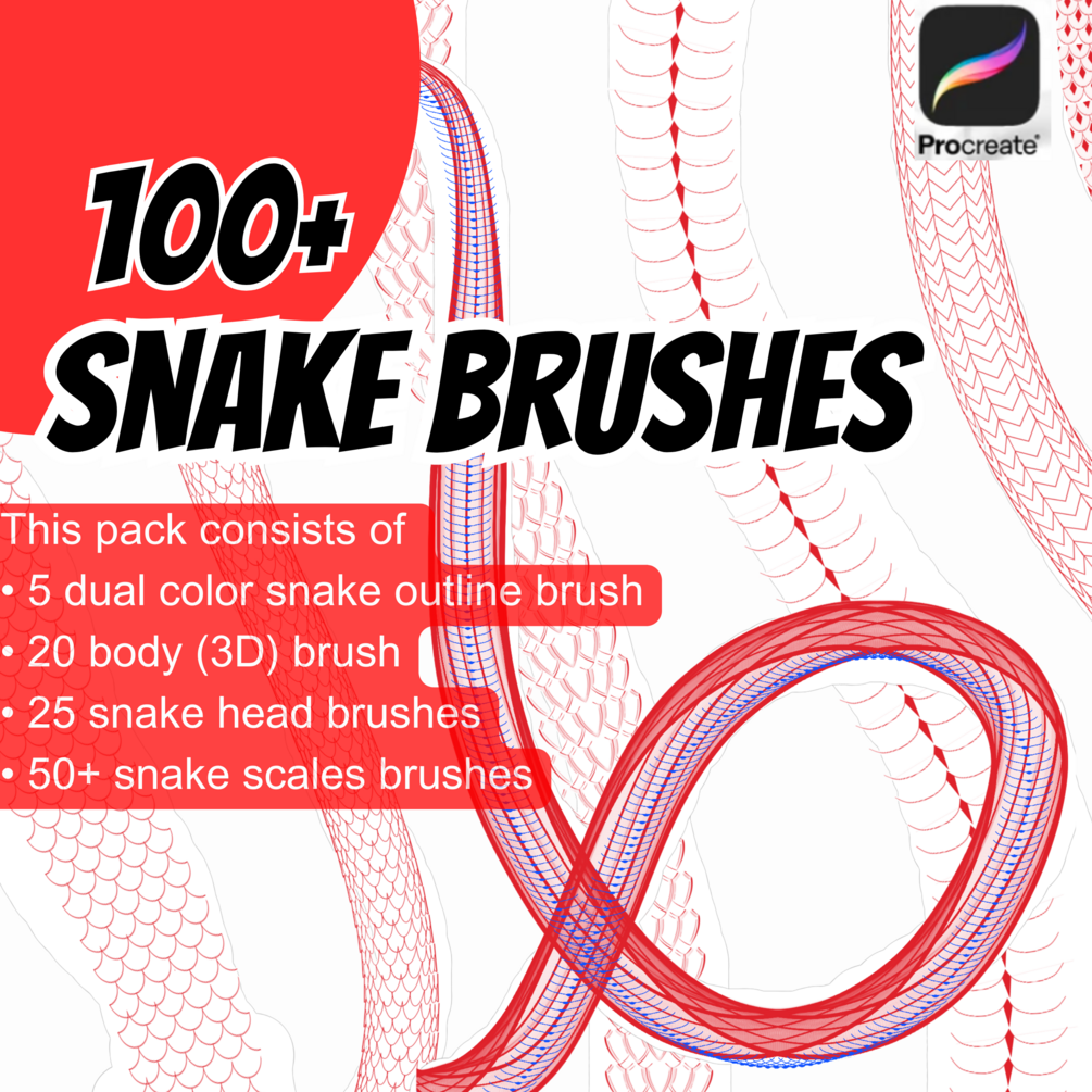 100 Procreate Snake Brush & Snake Builder Kit- (Snake Outline brush, 3D Snake Body Brush , Snake Head Stamp, Snake Scales,Snake belly Brush)